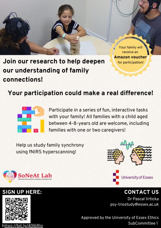 Pascal Vrticka was on the Drivetime show on Monday 29 September talking about two studies into synchrony in families. They are recruiting families in the local area to take part. For more details follow the links here: